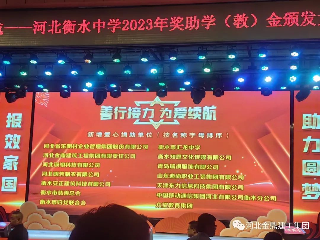 金鼎集團(tuán)祝賀河北衡水中學(xué)2023年獎(jiǎng)學(xué)金助學(xué)(教)金頒獎(jiǎng)大會(huì)圓滿結(jié)束